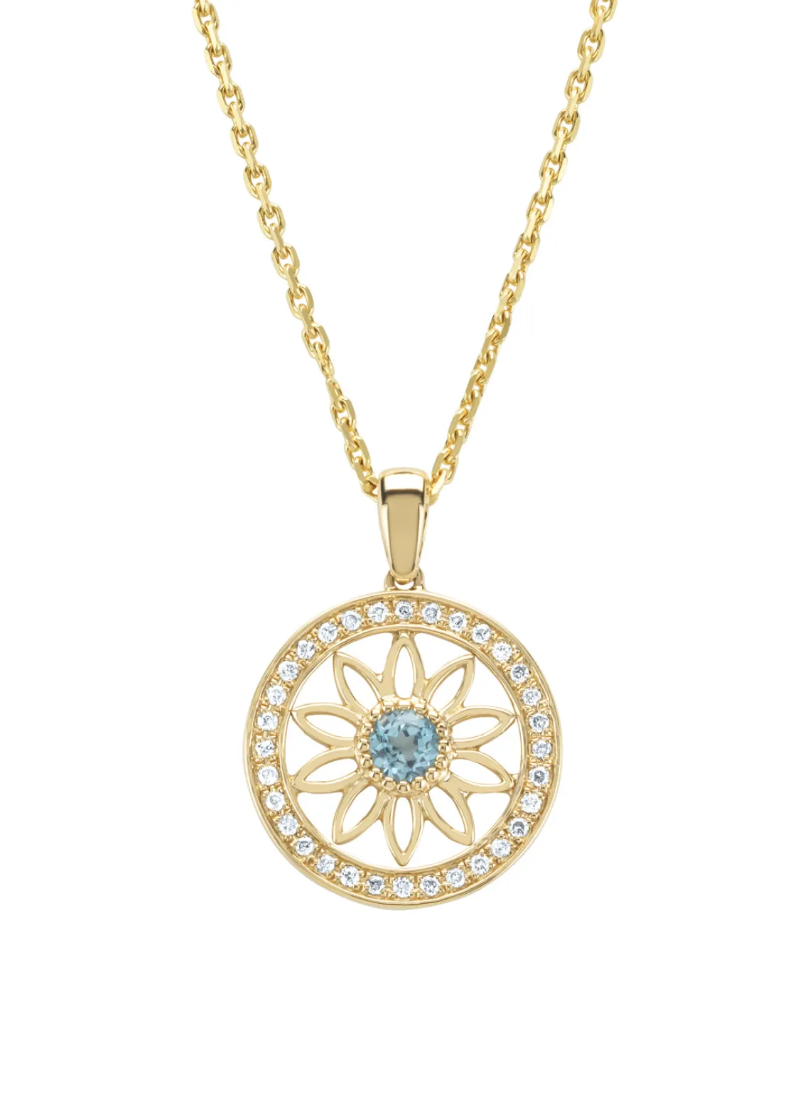 Deze topaas hanger (exclusief collier) is de geboortesteen van december. De hanger is vervaardigd uit 14 karaat geelgoud (1.2 gr.) en is gezet met een topaas en 32 briljant geslepen diamanten met een totaalgewicht van 0.09 ct. De hanger heeft een diameter van 14 mm. en een lengte van 19 mm. De Birthstones sieraden zijn gezet met maandstenen met elk een bijzondere betekenis en kracht. De topaas staat traditioneel bekend als de steen van liefde en voorspoed.