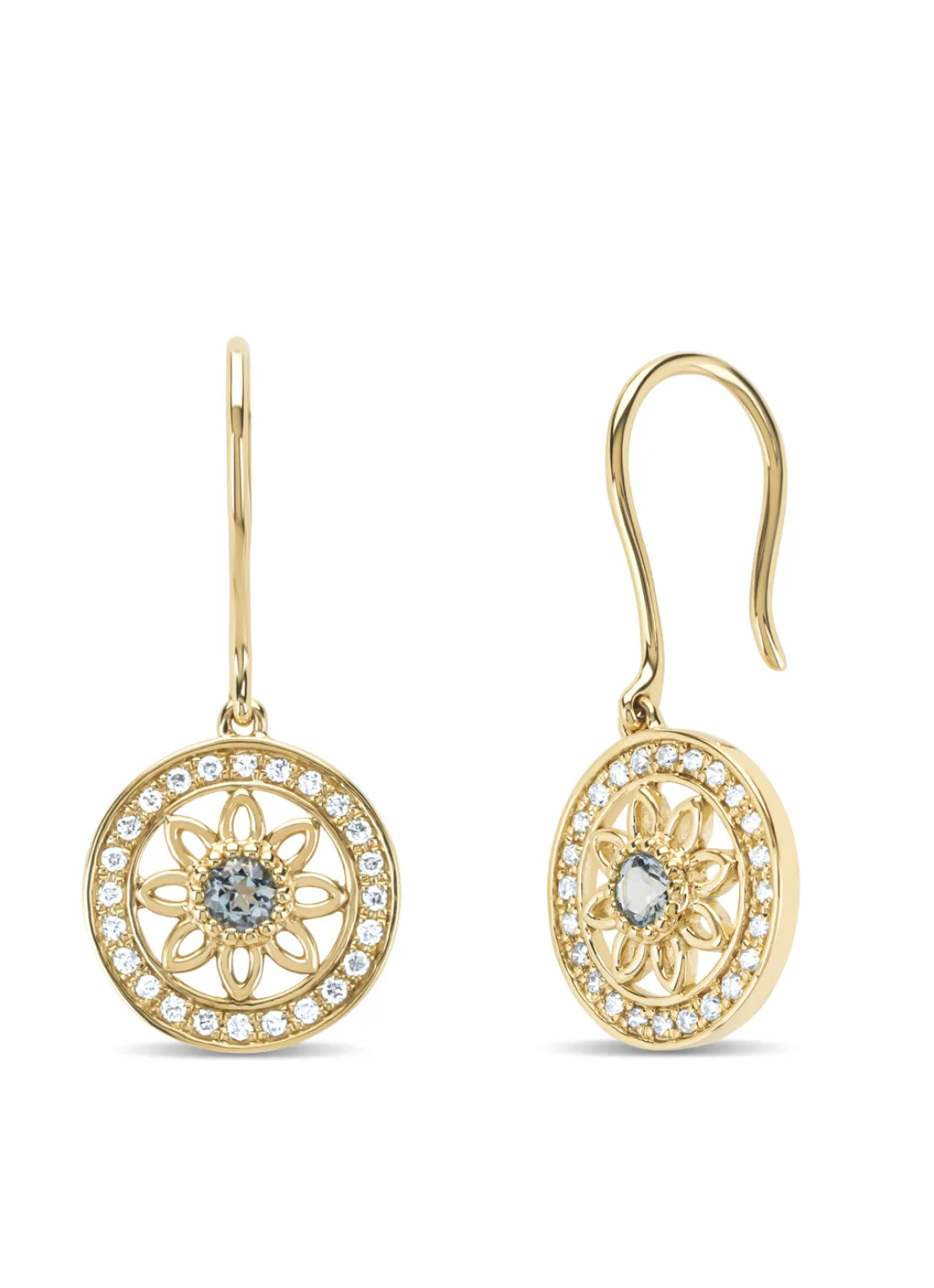 Birthstones geelgouden oorhangers aquamarijn (Maart)