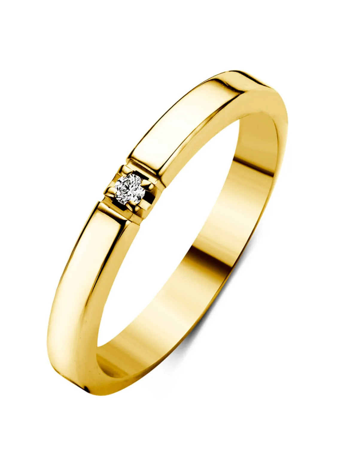 Geelgouden alliance ring, 0.03 ct diamant, Groeibriljant