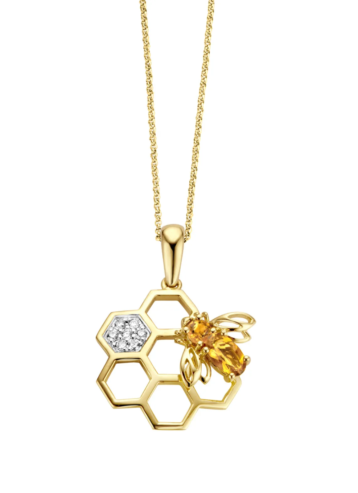 Geelgouden hanger, 0.25 ct citrien, Queen Bee