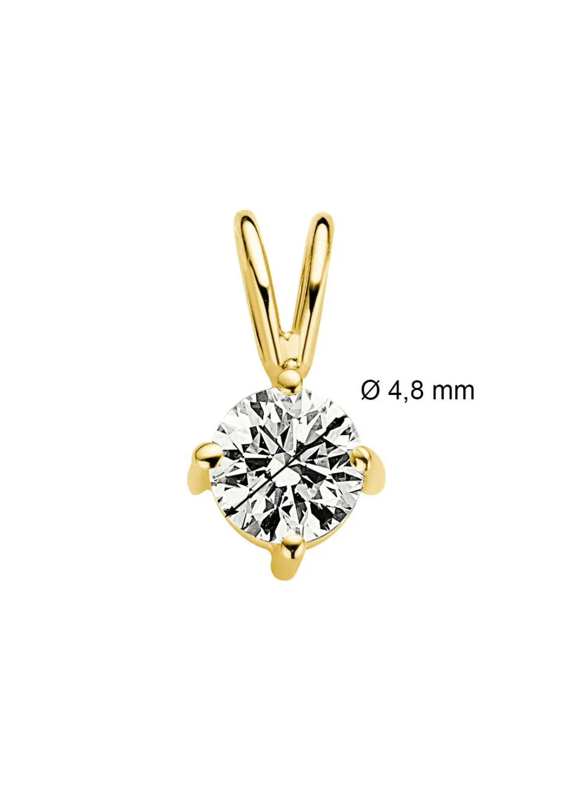 Deze hanger (exclusief collier) van Diamond Point is vervaardigd uit 18 karaat geelgoud (0.5 gr.) en is gezet met een briljant geslepen diamant met een totaalgewicht van 0.42 ct. De diameter van de diamant is circa 4.8 mm.