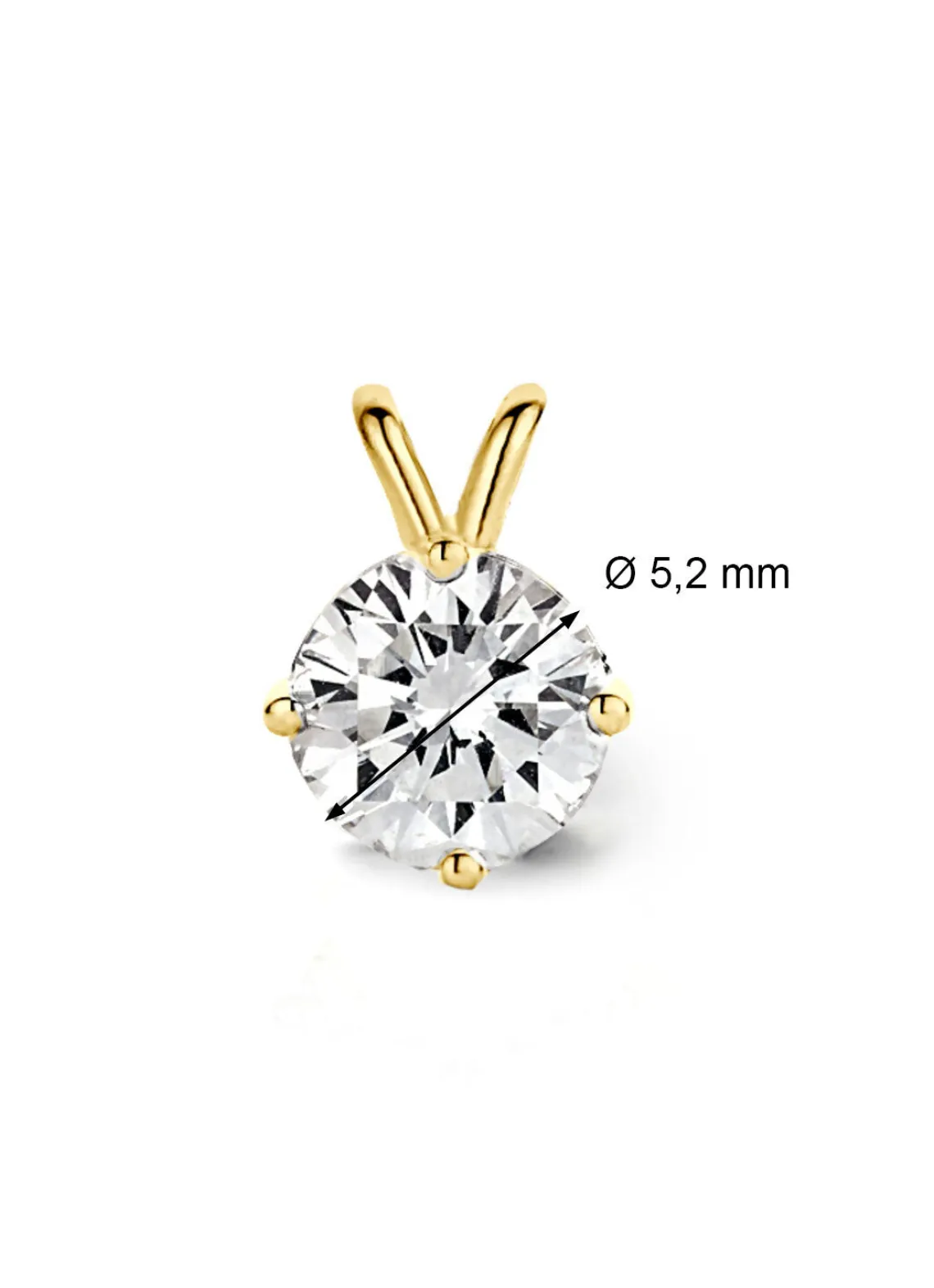 Deze hanger (exclusief collier) van Diamond Point is vervaardigd uit 18 karaat geelgoud (0.5 gr.) en is gezet met een briljant geslepen diamant met een totaalgewicht van 0.52 ct. De diameter van de diamant is circa 5.2 mm.