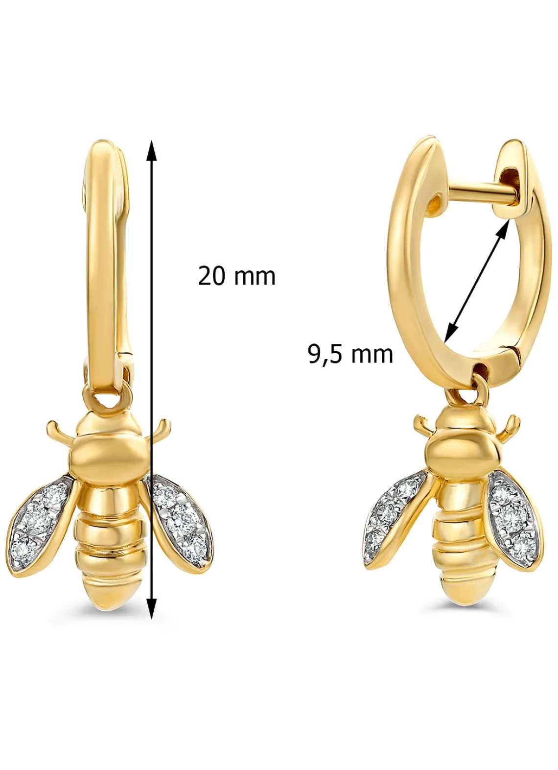 Geelgouden oorsieraden, 0.08 ct diamant, Queen Bee