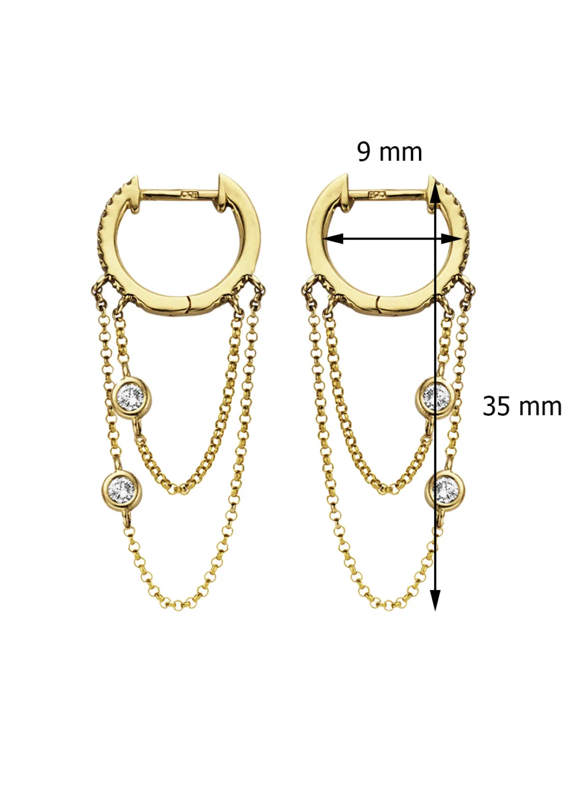 Deze oorstekers van Diamond Point zijn vervaardigd uit 14 karaat geelgoud (2.5 gr.) en zijn gezet met 26 briljant geslepen diamanten met een totaalgewicht van 0.24 ct. De Oorsieraden hebben een diameter van 9 mm. en een lengte van 3.5 cm.