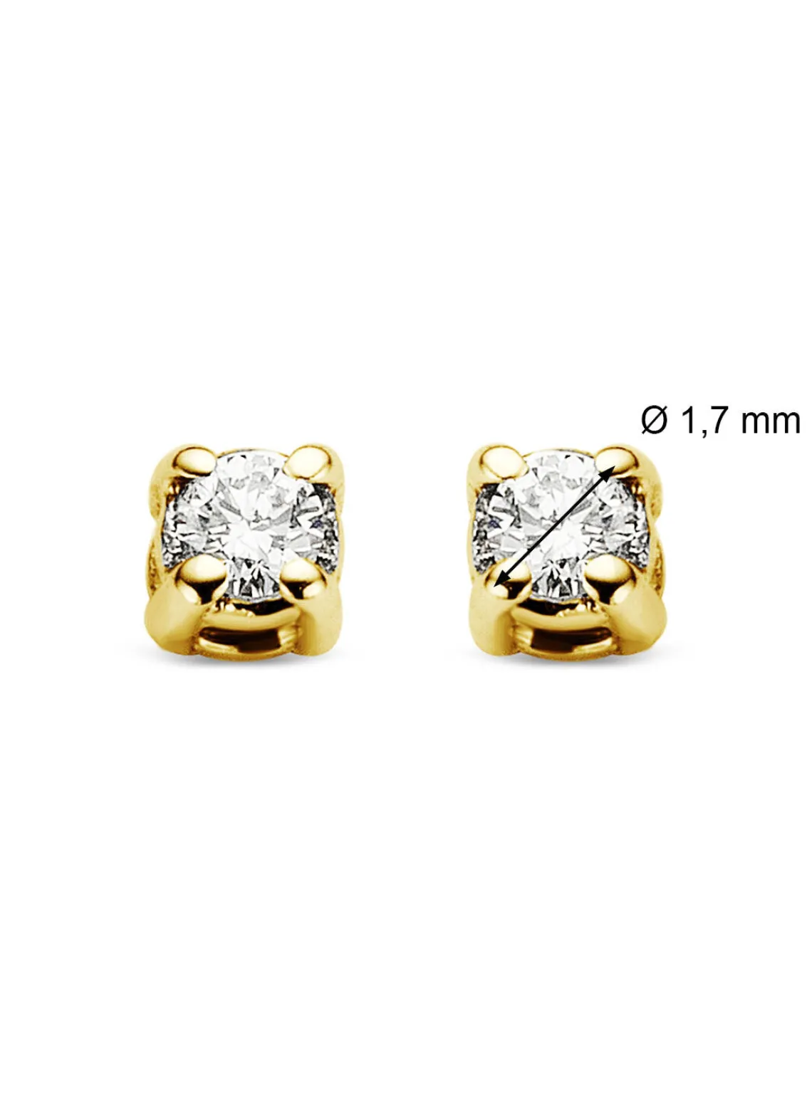 Deze solitair oorsieraden van Diamond Point zijn vervaardigd uit 18 karaat geelgoud (0.9 gr.) en zijn gezet met 2 briljant geslepen diamanten met een totaalgewicht van 0.04 ct.