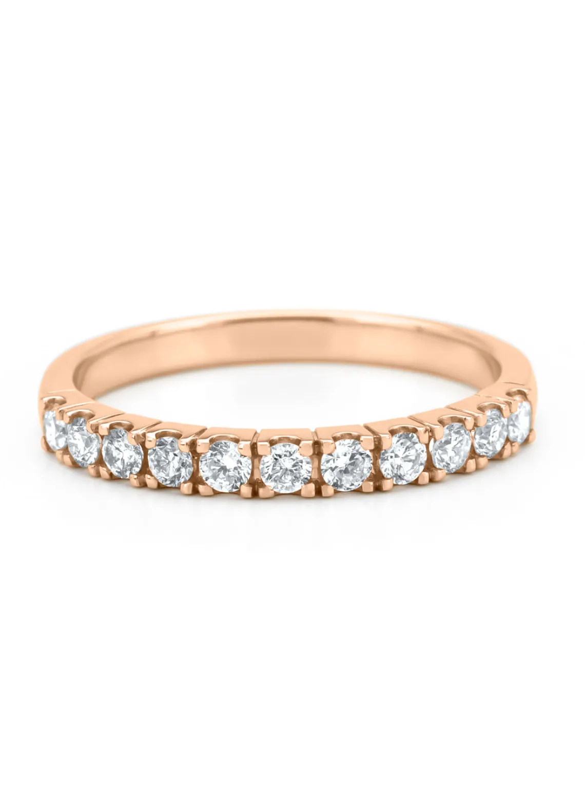 Deze aanschuifring van Diamond Point is vervaardigd uit 14 karaat roségoud (2.1 gr.) en is gezet met 11 briljant geslepen diamanten met een totaalgewicht van 0.39 ct. De ring heeft een breedte van 2.5 mm.