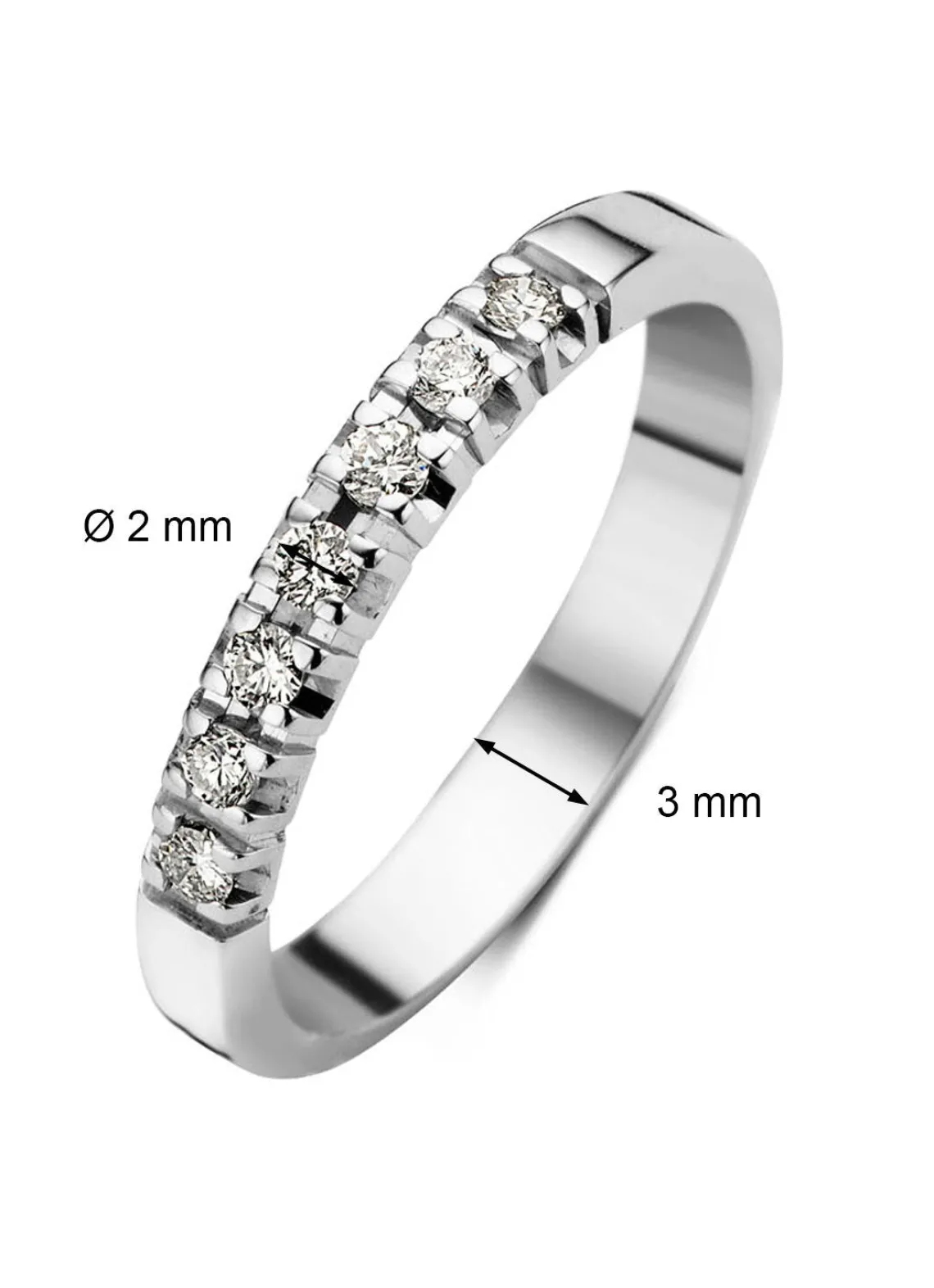 Deze alliance ring van Diamond Point is vervaardigd uit 18 karaat witgoud (3 gr.) en is gezet met 7 briljant geslepen diamanten met een totaalgewicht van 0.21 ct.