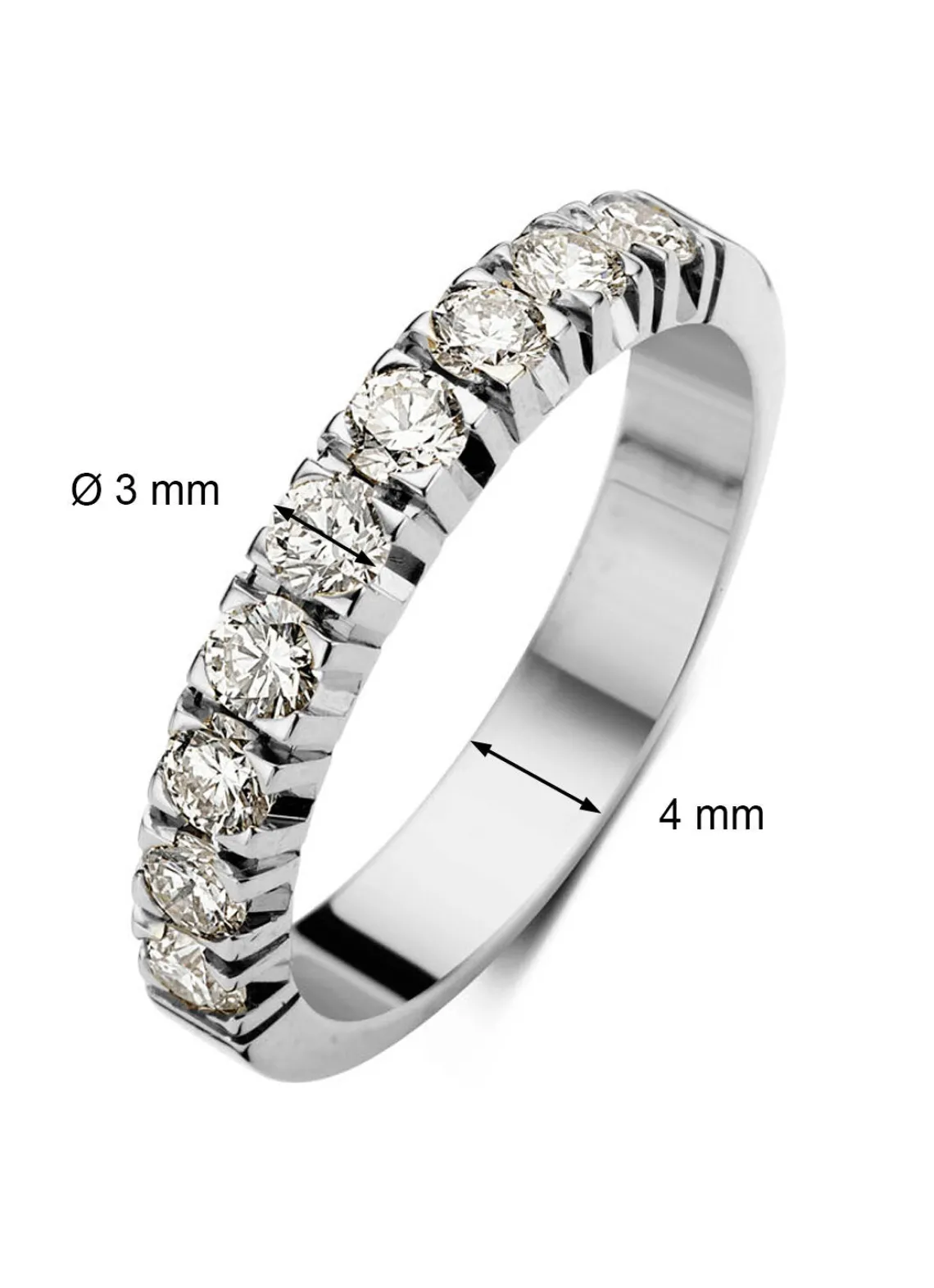 Deze alliance ring van Diamond Point is vervaardigd uit 18 karaat witgoud (6 gr.) en is gezet met 9 briljant geslepen diamanten met een totaalgewicht van 0.9 ct.