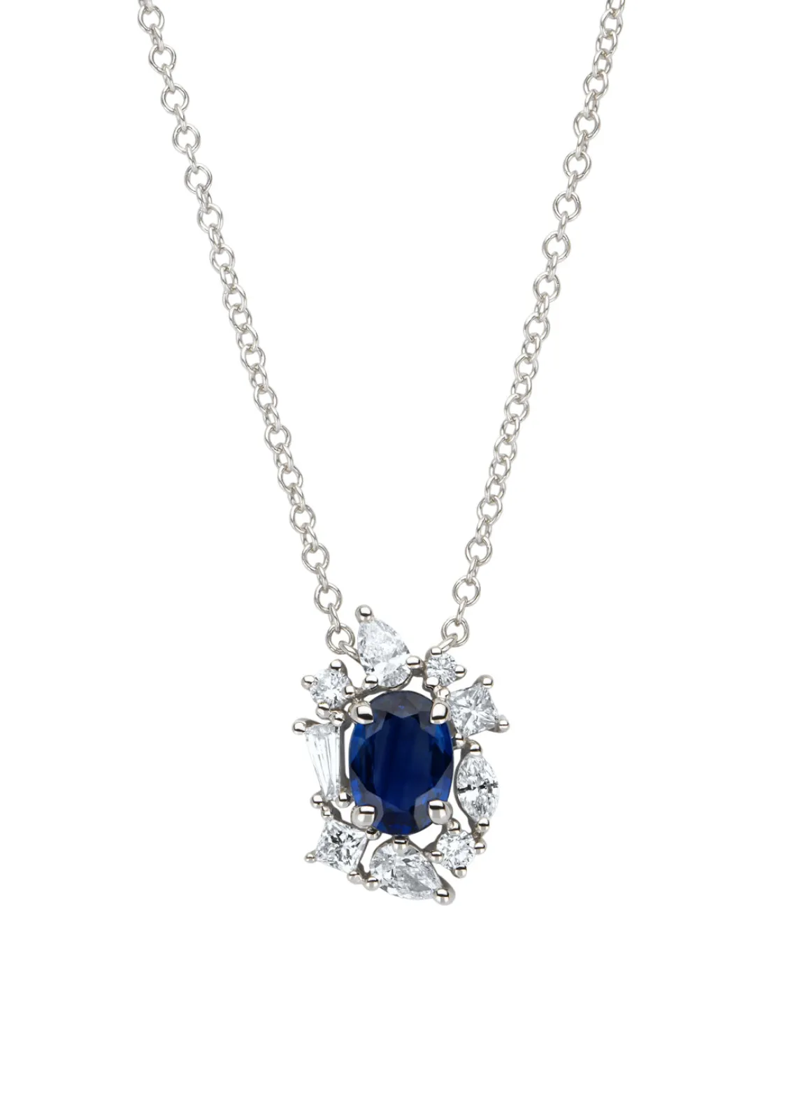 Witgouden collier, 0.84 ct blauwe saffier, Majestic