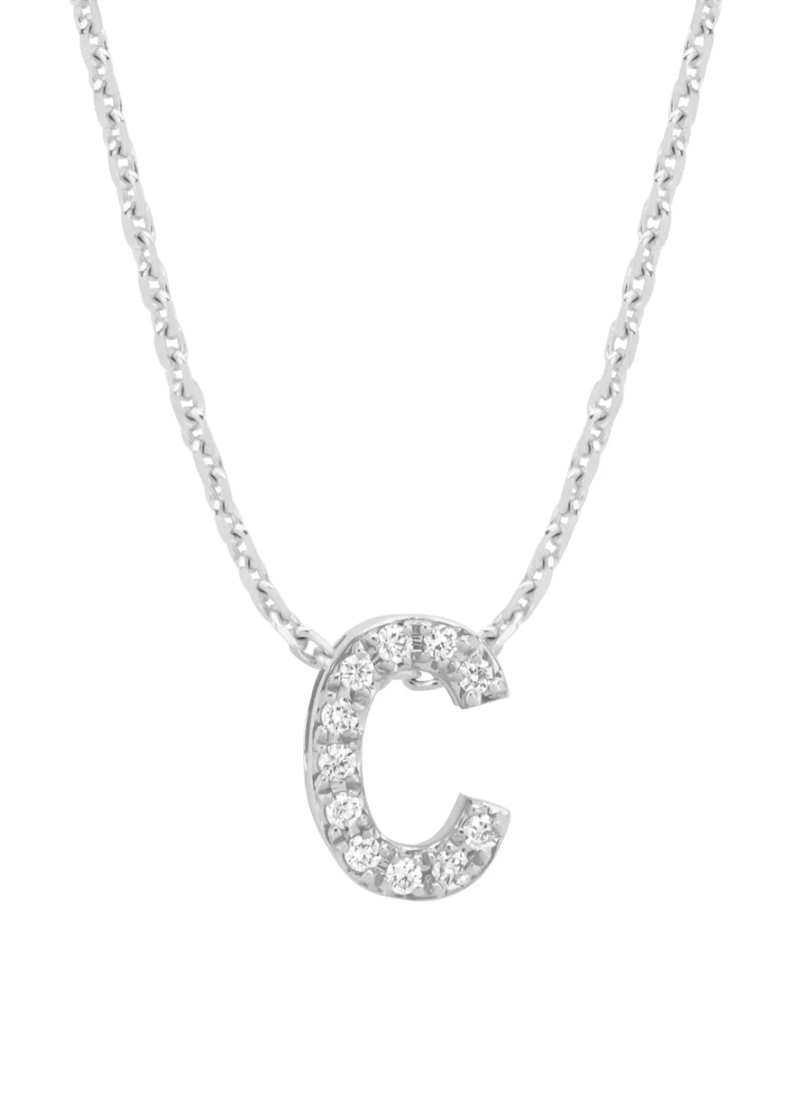 Witgouden hanger C, 0.04 ct diamant, Alphabet