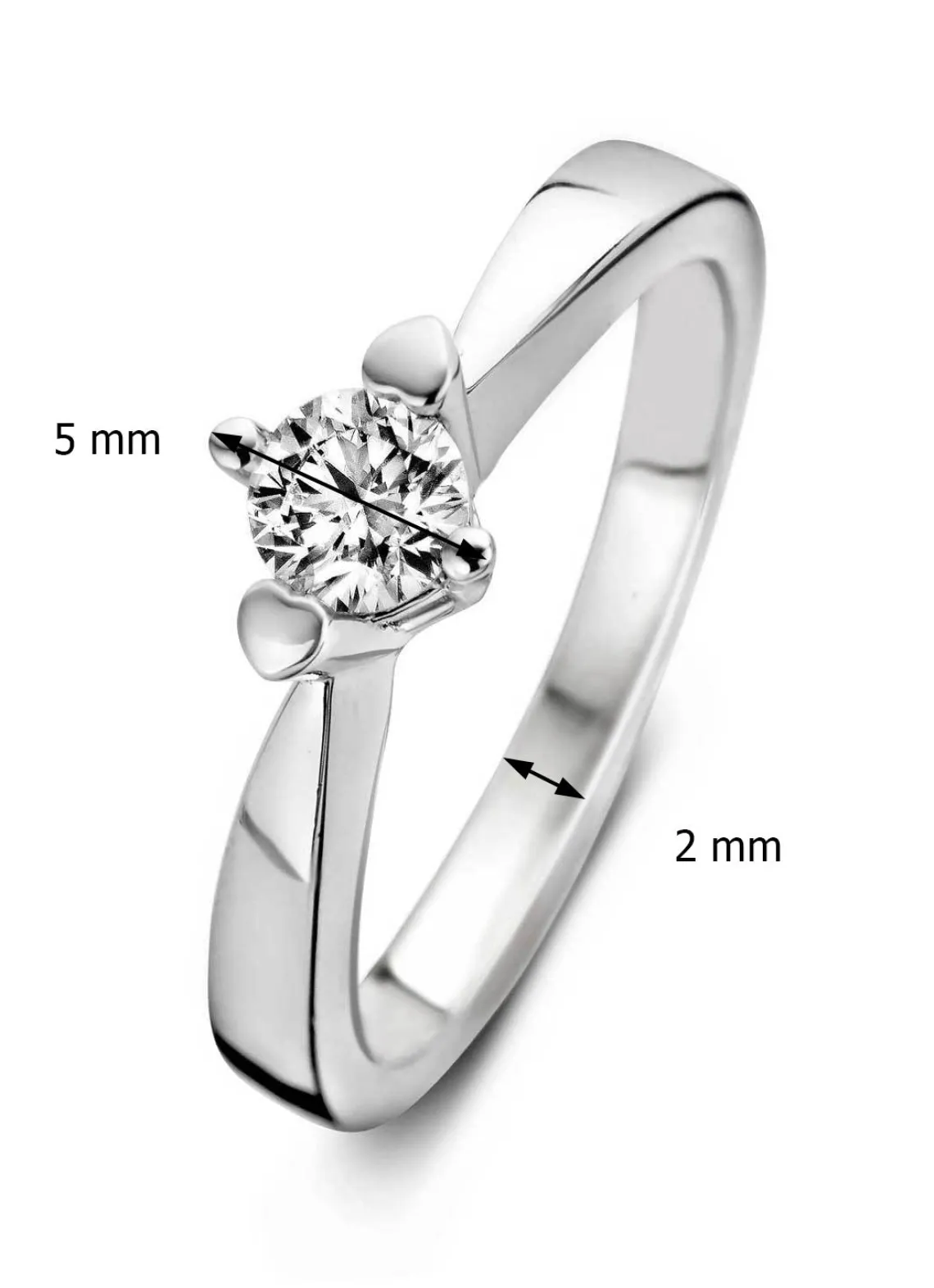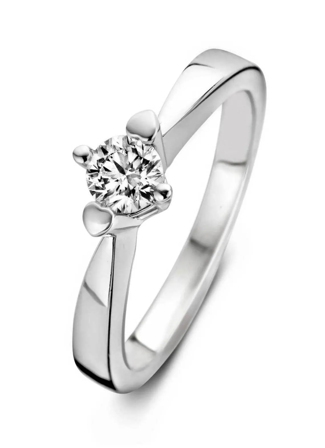 Witgouden ring, 0.16 ct diamant, Hearts & Arrows