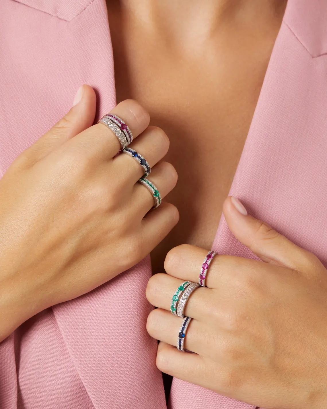 Majestic neemt ons mee naar het kasteelleven, naar een universum van charme, luxe en prestige. Majestic bestaat uit 14 karaat gouden ringen, gezet met de koninklijke edelstenen robijn, smaragd, saffier en diamant. Bestijg de troon van ultieme elegantie met de weelderige uitstraling en majestueuze schittering van deze statige ringencollectie.