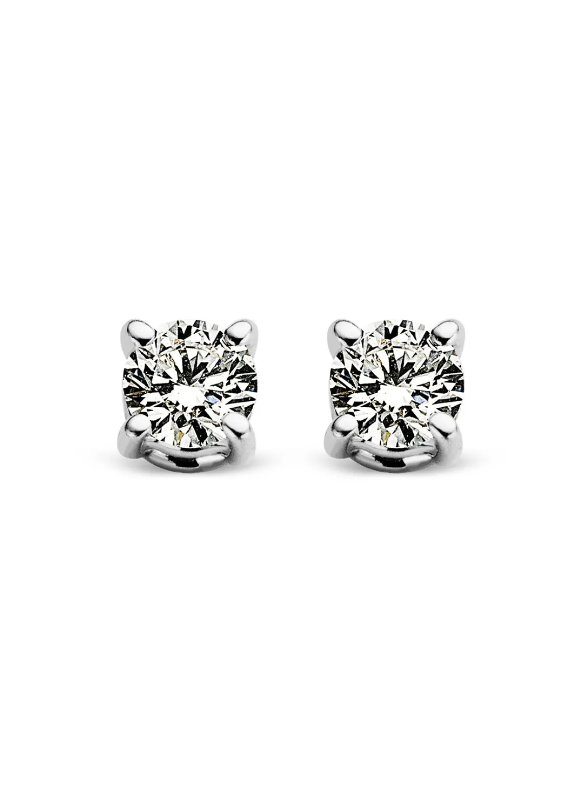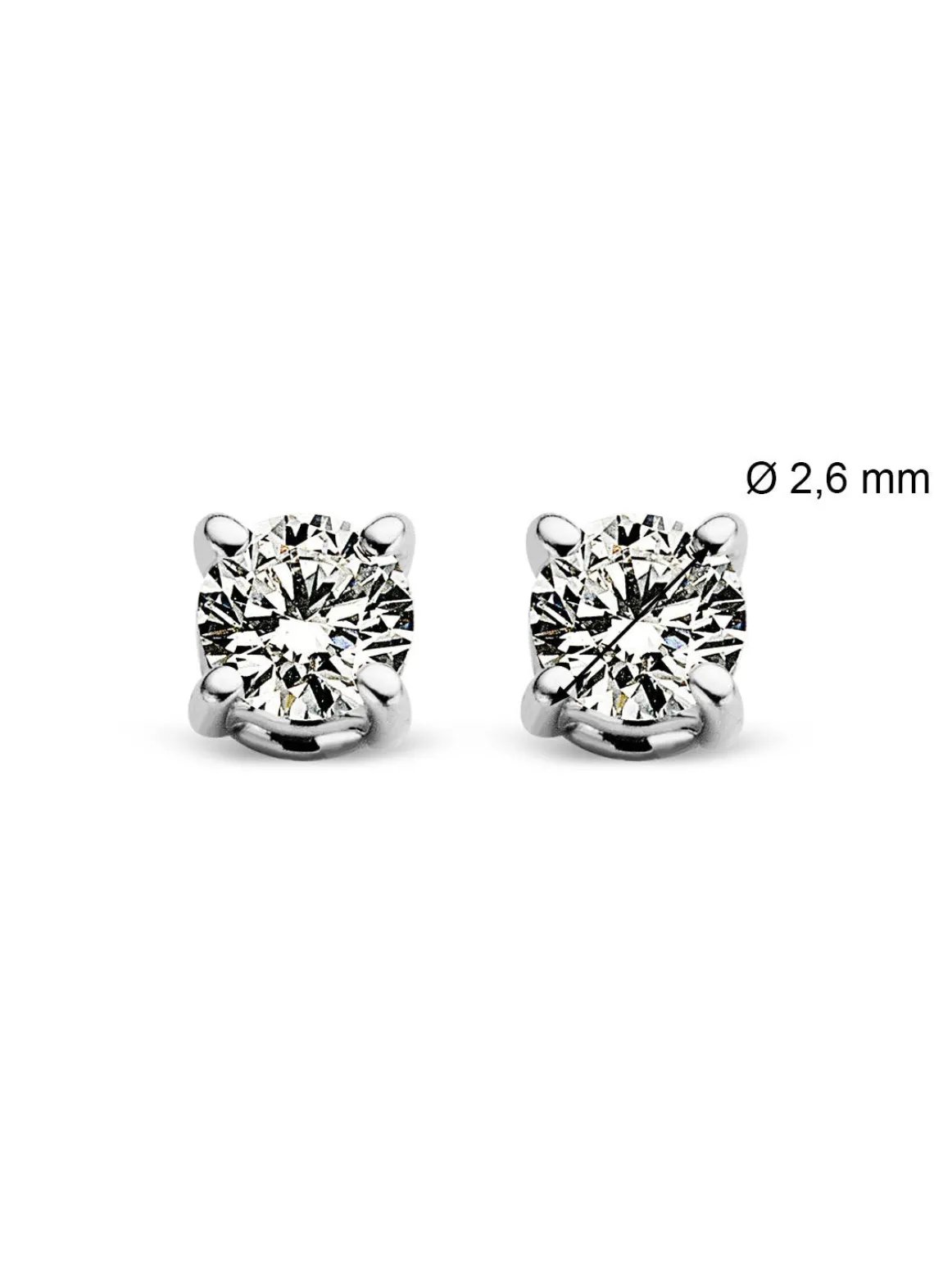 Deze solitair oorsieraden van Diamond Point zijn vervaardigd uit 18 karaat witgoud (1.5 gr.) en zijn gezet met 2 briljant geslepen diamanten met een totaalgewicht van 0.14 ct.