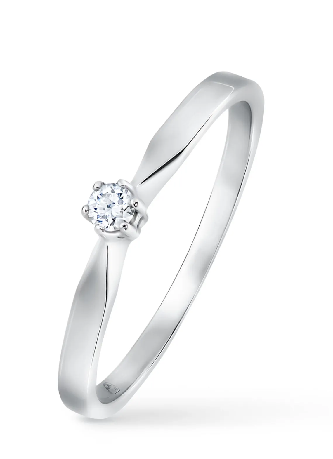 Witgouden solitairring, 0.06 ct diamant, Groeibriljant