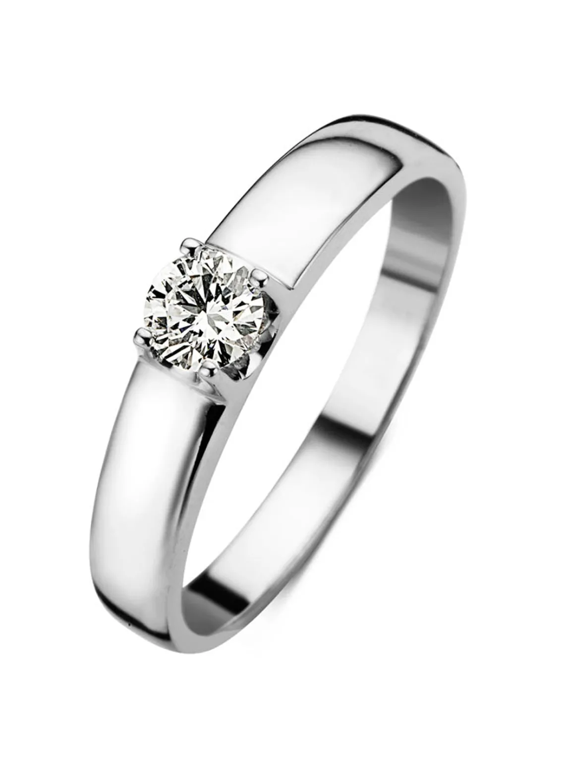 Witgouden solitairring, 0.30 ct diamant, Groeibriljant